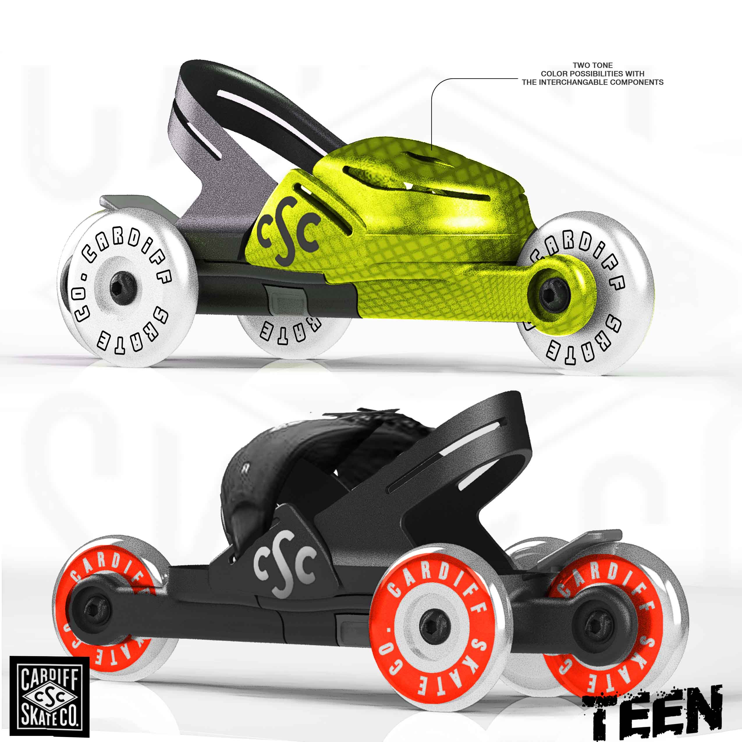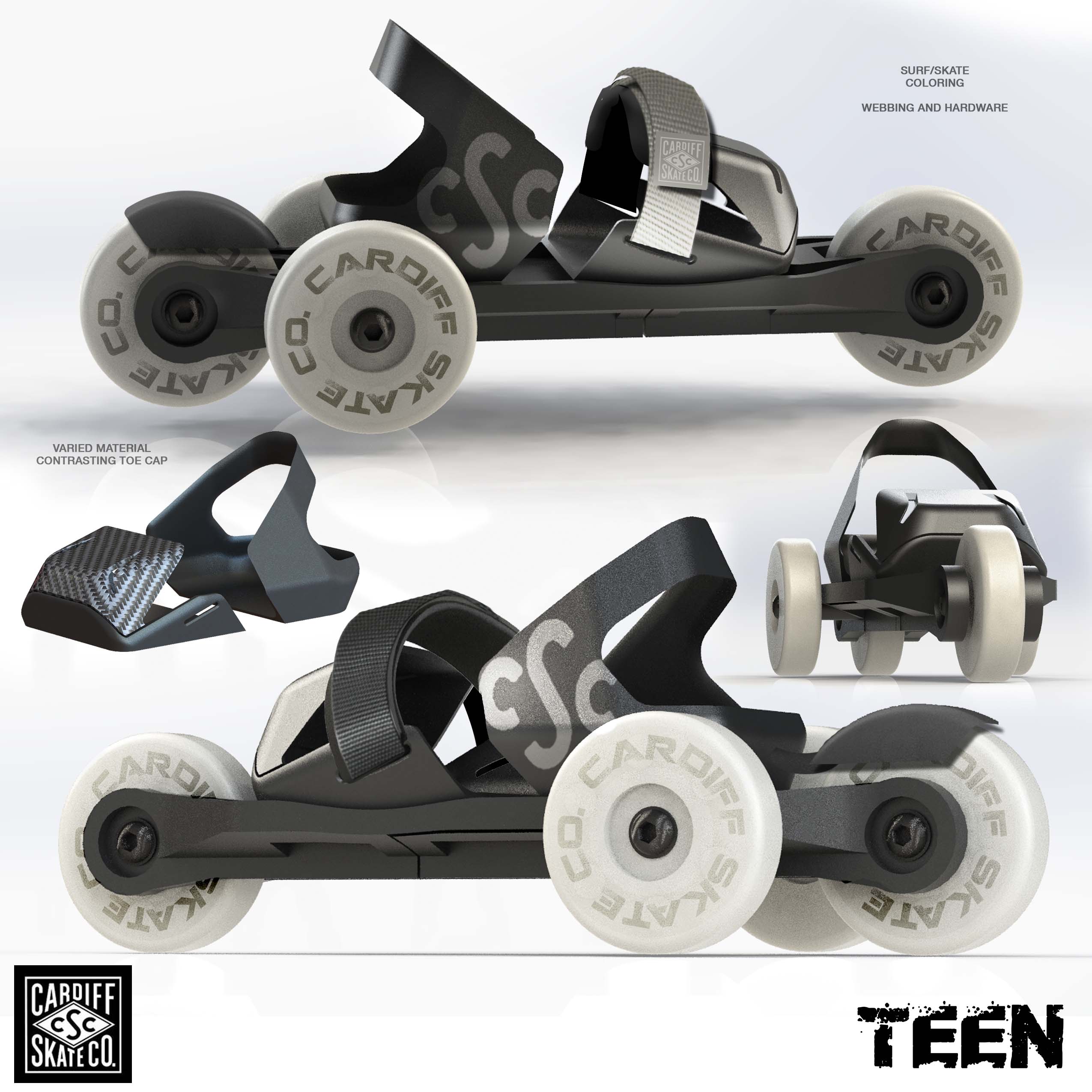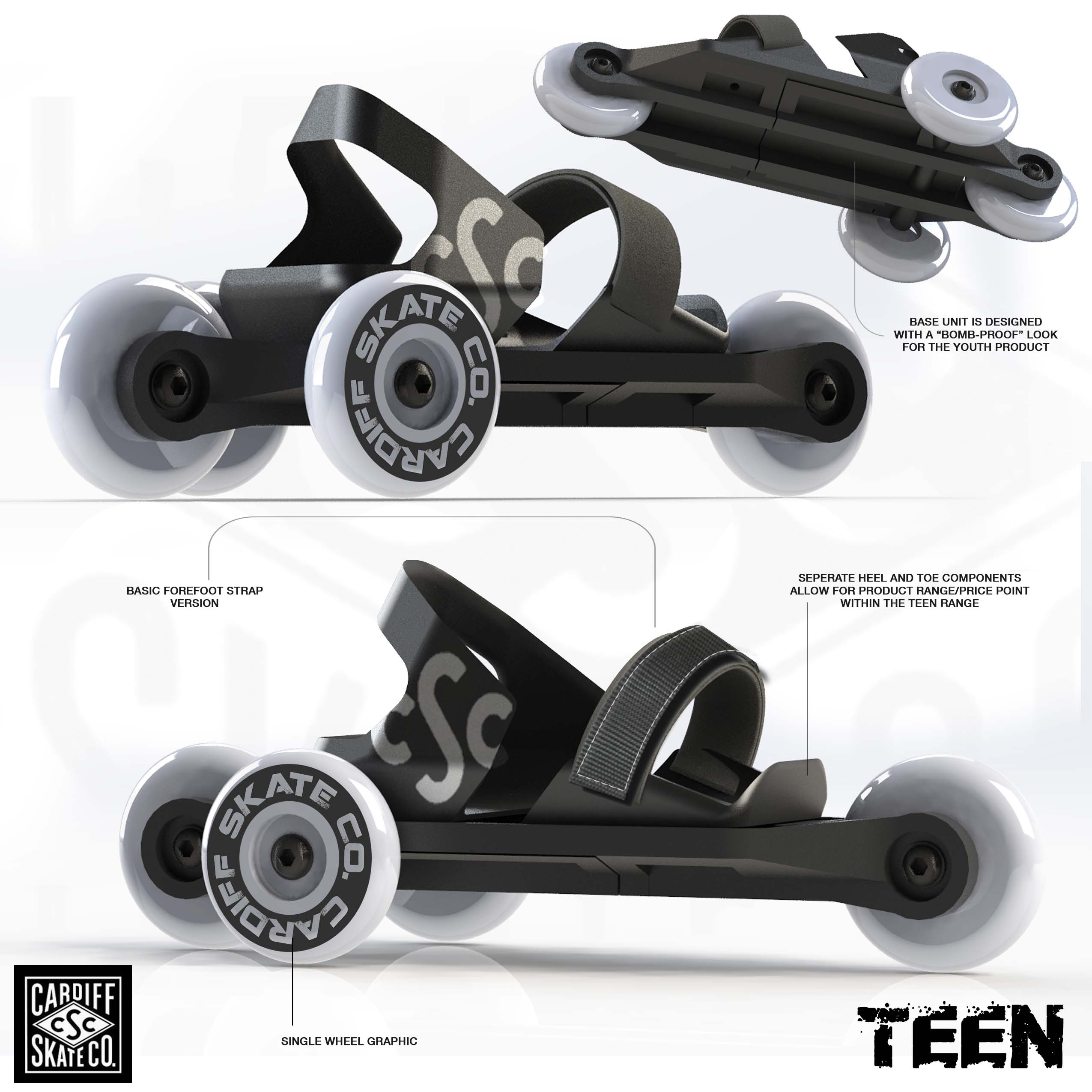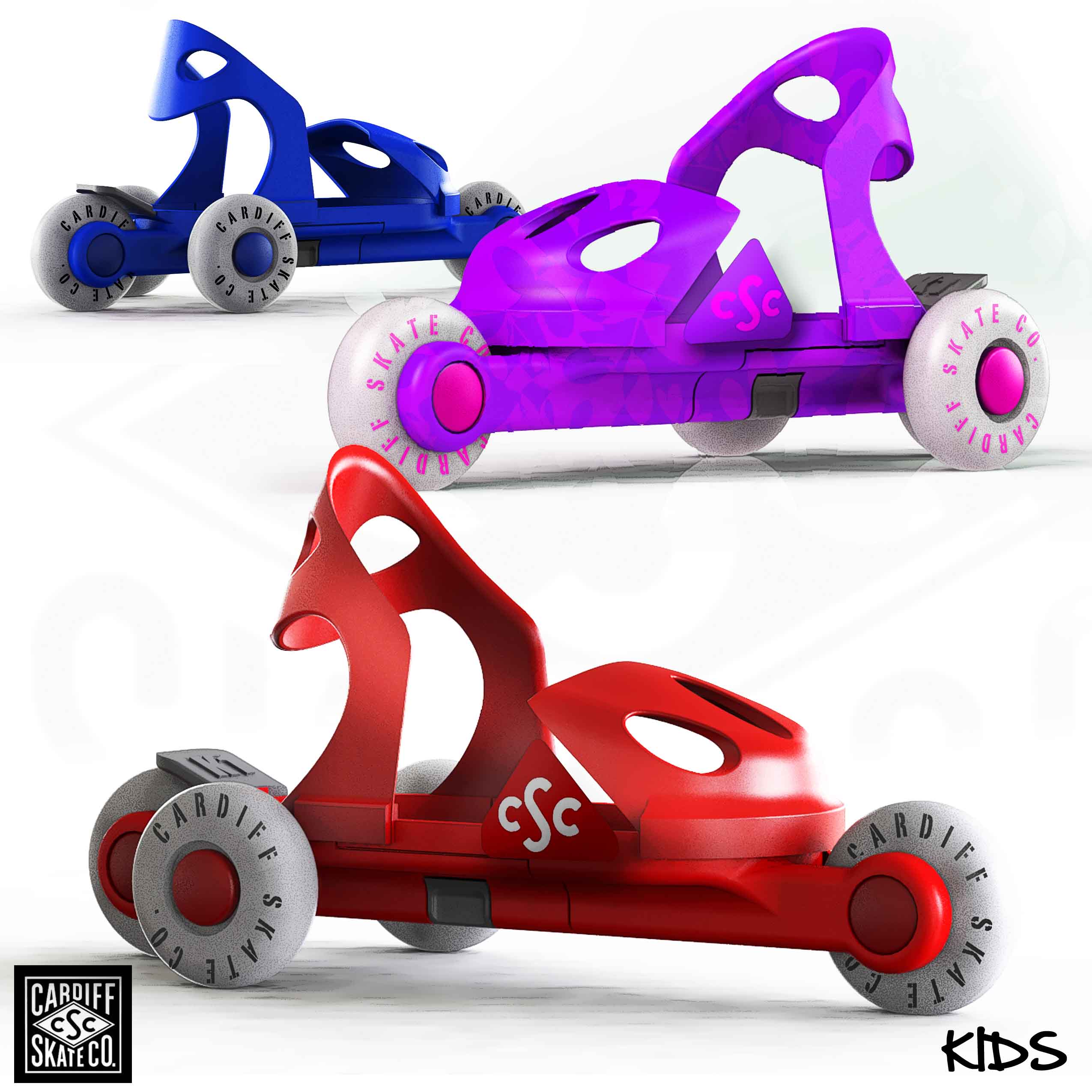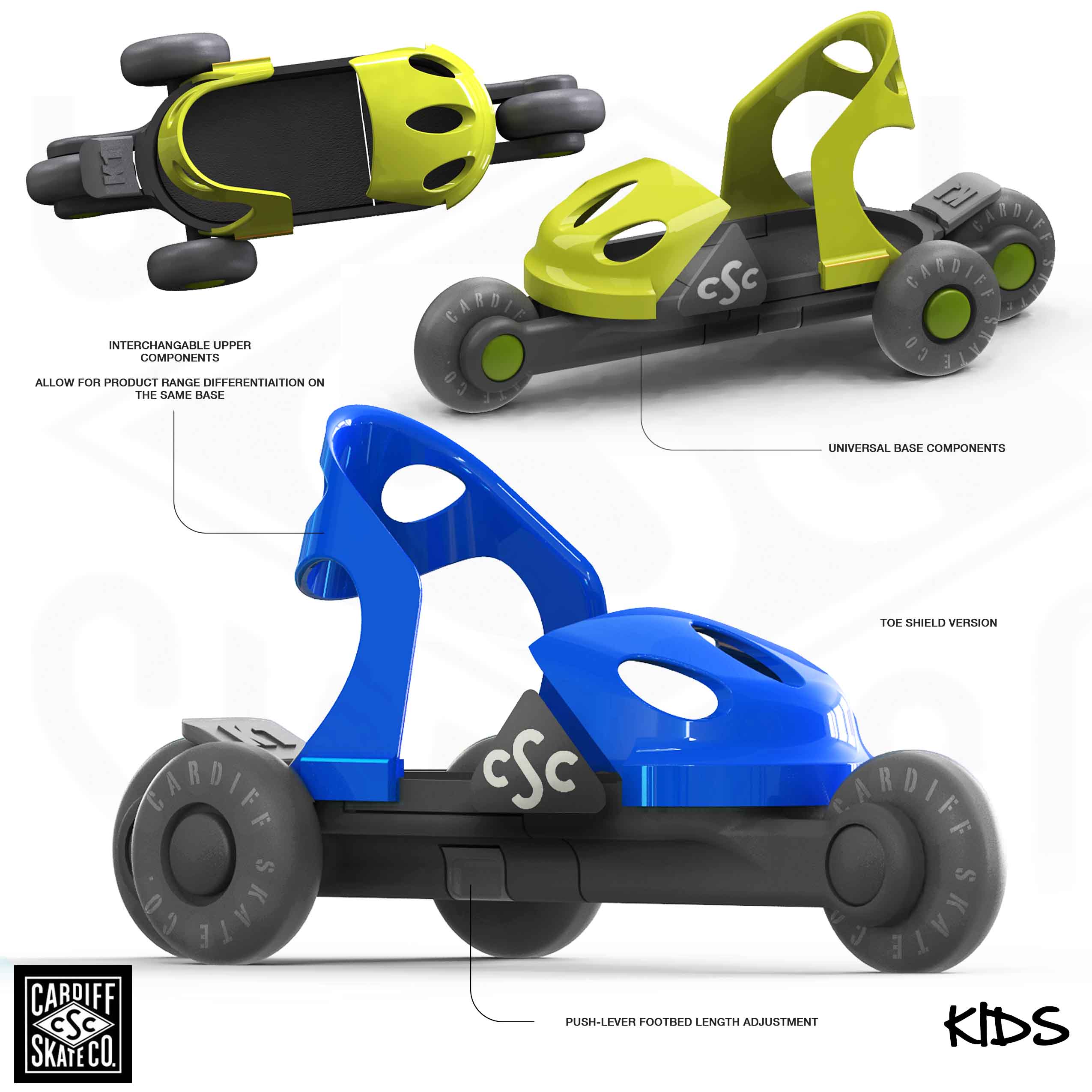 Our history with the Cardiff Skate Company began with the original inventor, Brian Green, of the tri-skate in 2006. Our recent work was an update to the original product line for their adult skates in preperation for a nation-wide launch at Target. During early line-meetings, Faulconer Design made the suggestion to include a NEW product specific for kids and youth as an additional offering. The Cruiser line of products were the end result. Along with the products, themselves, we also created packaging and point-of-purchase display. The project was completed and delivered within a very compressed time frame.
