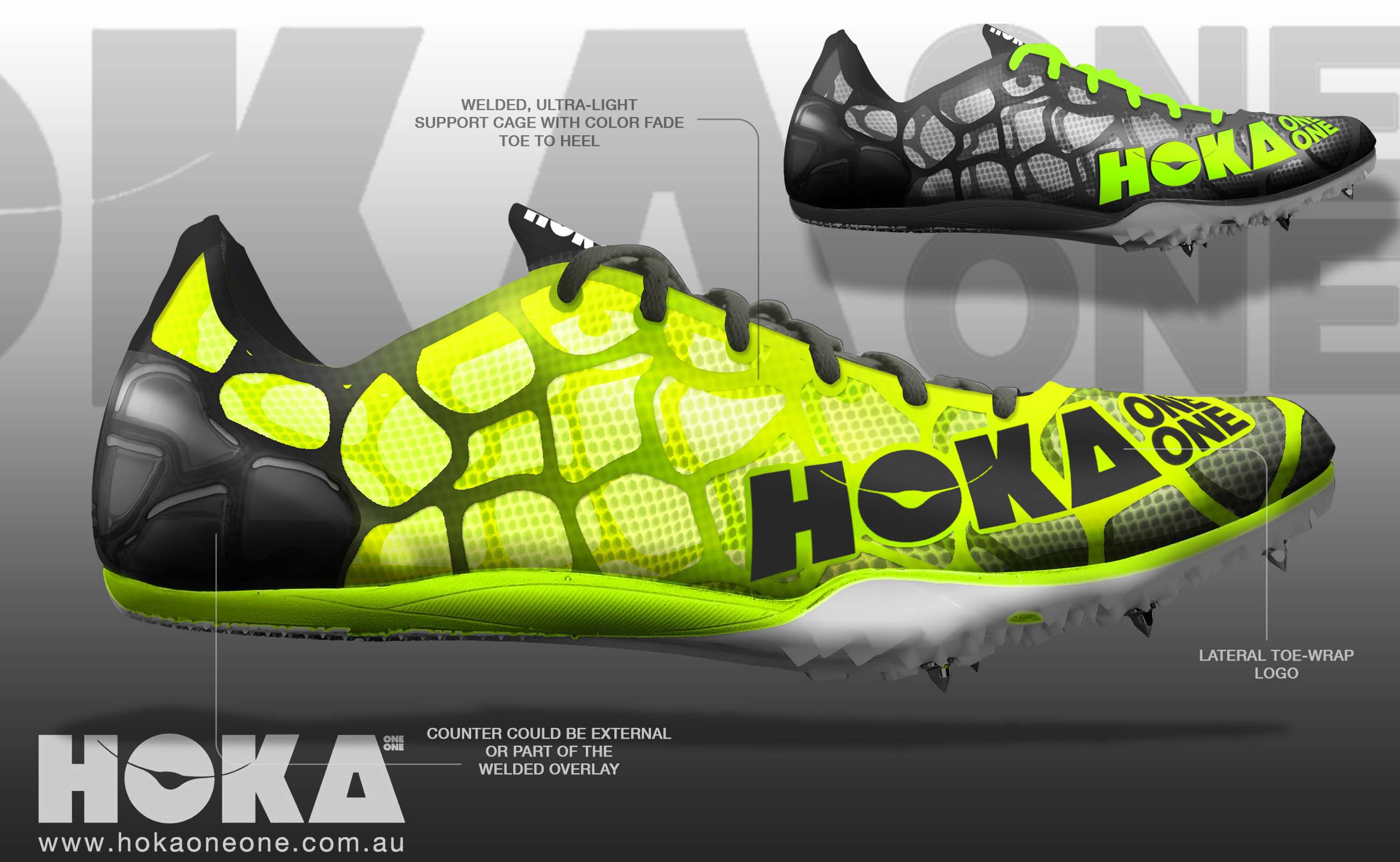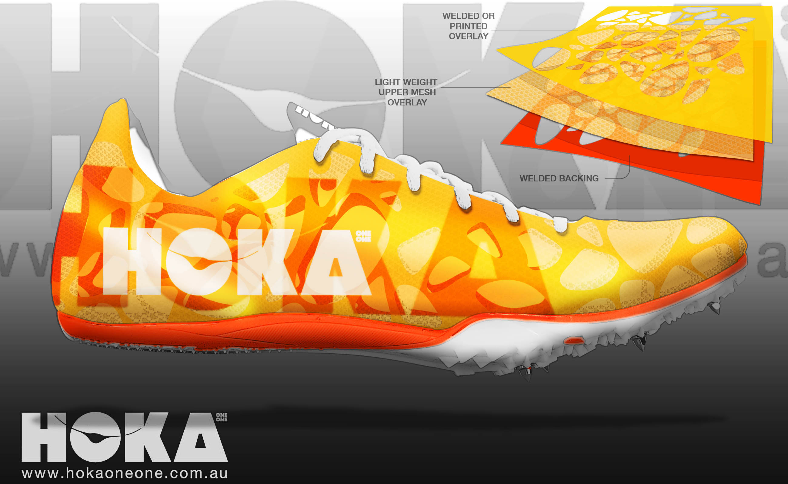 Asked to update Hoka One One's original race spike, we developed a minimal upper construction using contemprary construction methods and materials for a lighter, faster race spike.